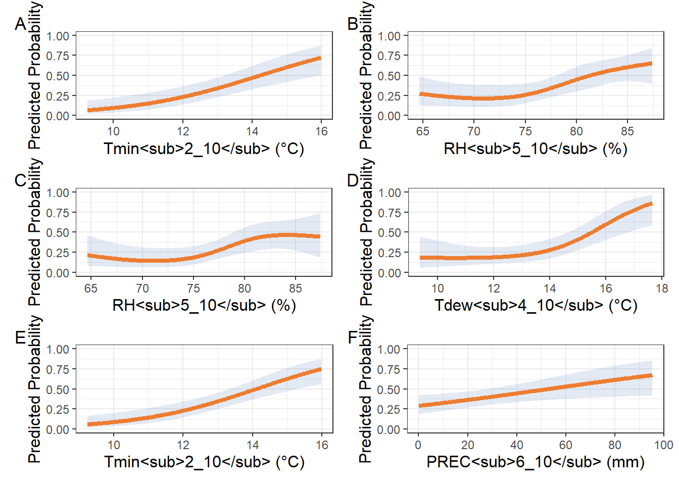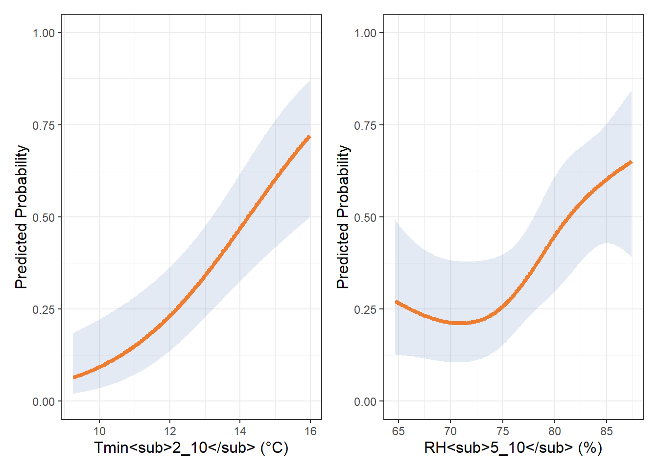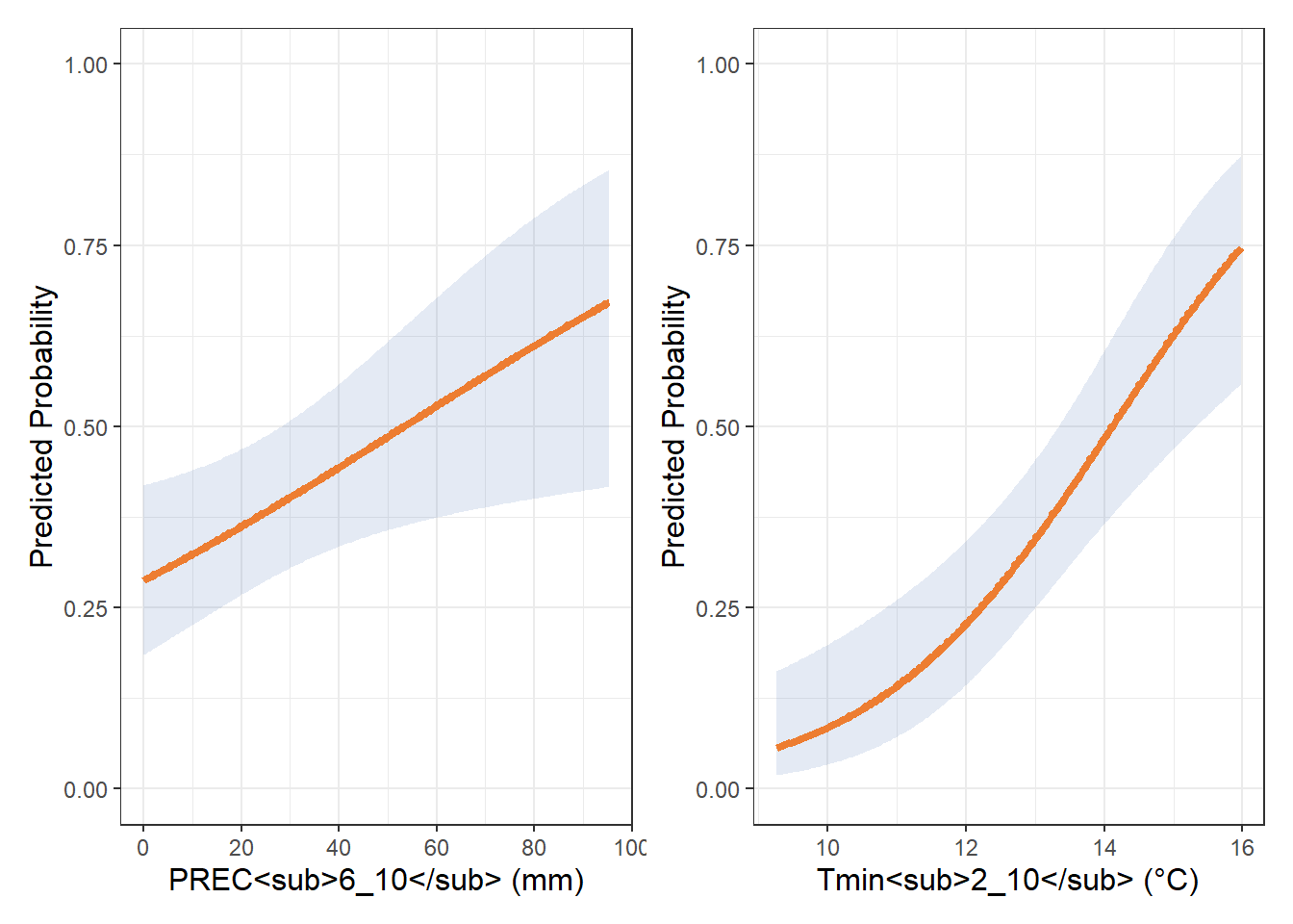 labs(x = "Tmin<sub>2_10</sub> (°C)", y = "Predicted Probability") +