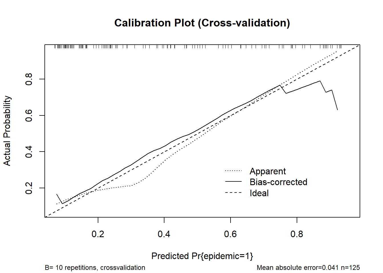 <- calibrate(fit_stacked, method = "crossvalidation", B = 10)